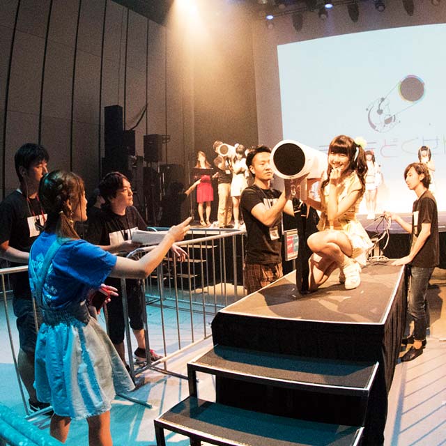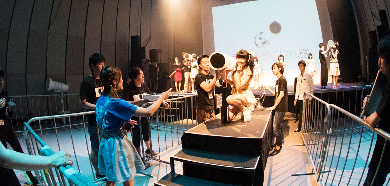 「アイドルを独り占めしたい」そんなアイドルファンの夢を実現。超指向性スピーカーを使用することによってアイドル1人1人に向けて歌声を届けることを可能にしました。