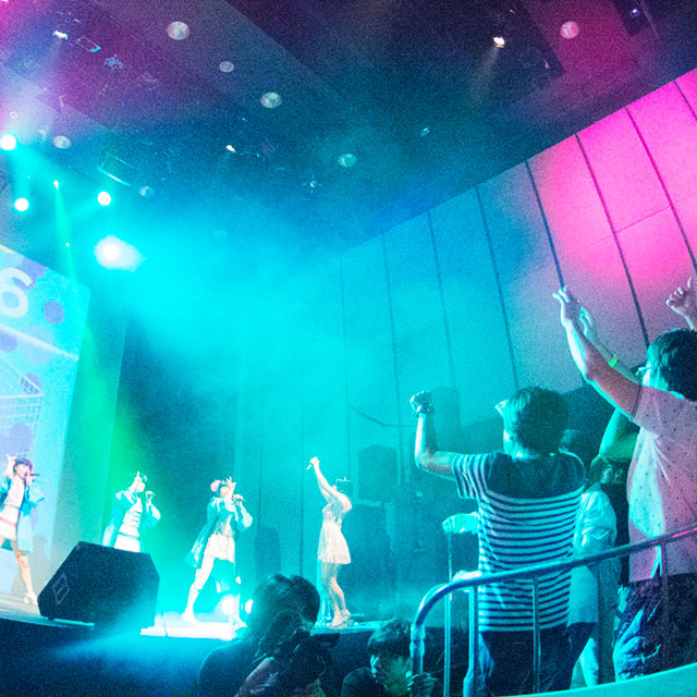 2チームに分かれての虹コンのバトルに、観客も参加。参加に特別な道具は要りません。必要なのは観客のノリだけ。ただ立って見るだけじゃない、来た人も参加できるライブをカタチにしました。