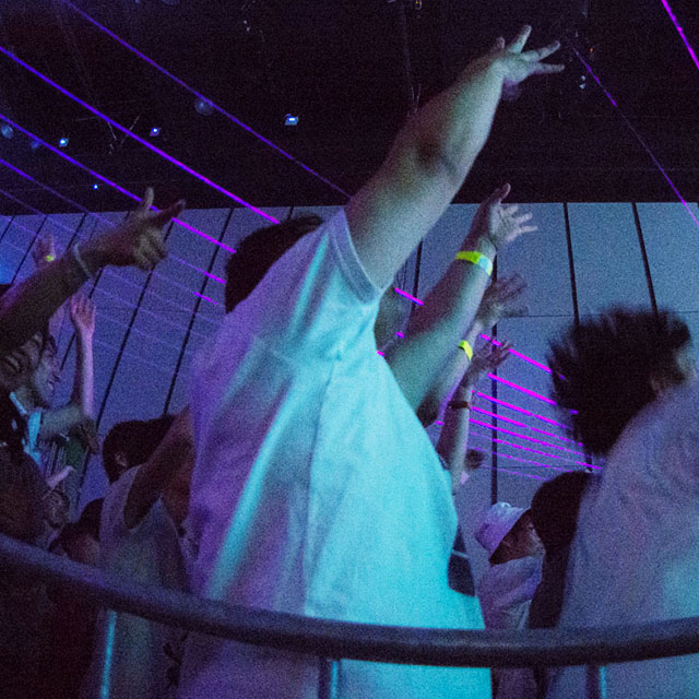 指先に装着した赤外LED放出ガジェットから、観客の動きのシンクロ率を測定し、同じ場所・同じ音楽・同じアイドルを応援するだけで、見ず知らずの何百人もの気持ちがひとつになる不思議な体験をカタチにしました。